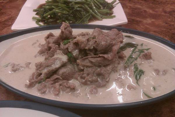 混合著各種香料的咖哩醬汁就這樣狠狠地巴在牛肉片上不肯下來