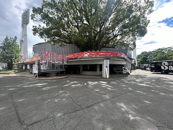 Salamanders 在熊本的主場座落在兩個地方,一個是位在熊本市中心的藤崎台棒球場,另一個則是大眾交通較不方便抵達的山鹿市民球場,距離熊本有一小段車程。我今天去看的是藤崎台棒球場,搭熊本路面電車到段山町之後再走路約十分鐘就可以到達
