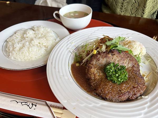 漢堡排有種昭和復古的風味,調味一樣稍微偏鹹。不過這邊定食的白飯煮得真的不錯,粒粒分明。很適合搭配偏鹹的肉或醬汁一起吃