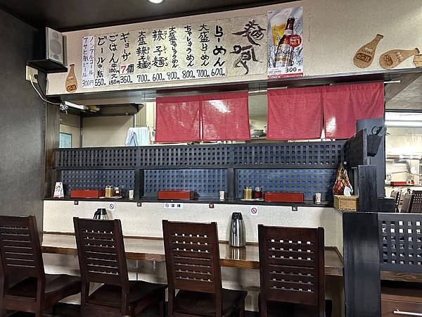 今天來到熊本市北區植木附近,午餐找了這間拉麵專賣店。店內大概25個座位,看起來是老闆和老闆娘兩個人經營了滿久的個人麵店。菜單很單純,就只有不同尺寸的拉麵、辣子麵、餃子。我們今天點了らーめん (¥600)跟辣子麵(¥600)