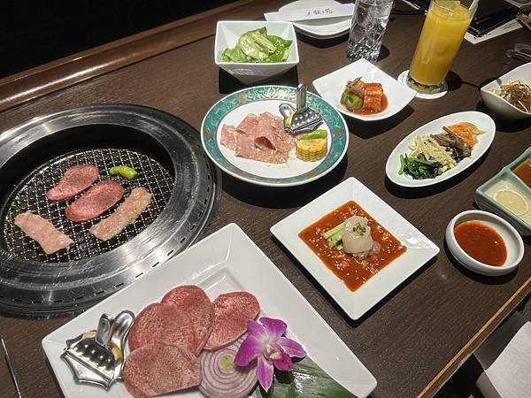 這次為了要慶生,特別預約了位在 SAKURA MACHI 樓上的敘敘苑燒肉。一進到店內,無論是外場人員的服務或是店內的硬體裝潢,都讓人很明顯感受到高級餐廳的氛圍。平日晚上用餐的人數並不算特別多,我們被安排到了併排面窗的位置。首先點了8800円的 J コース套餐,又單點了綜合海鮮、牛舌、豬肩肉、韓式牛肉湯麵、冷奴豆腐