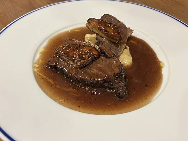 今天套餐的最後一道是燉牛頰肉,牛肉上面還放上了一片煎烤過的雞肝