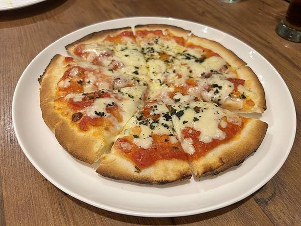 接下來是瑪格莉特批薩。這裡的餅皮滿有特色的,並非台灣常見的鬆厚餅皮,而是偏紐約式的薄餅